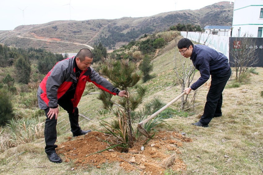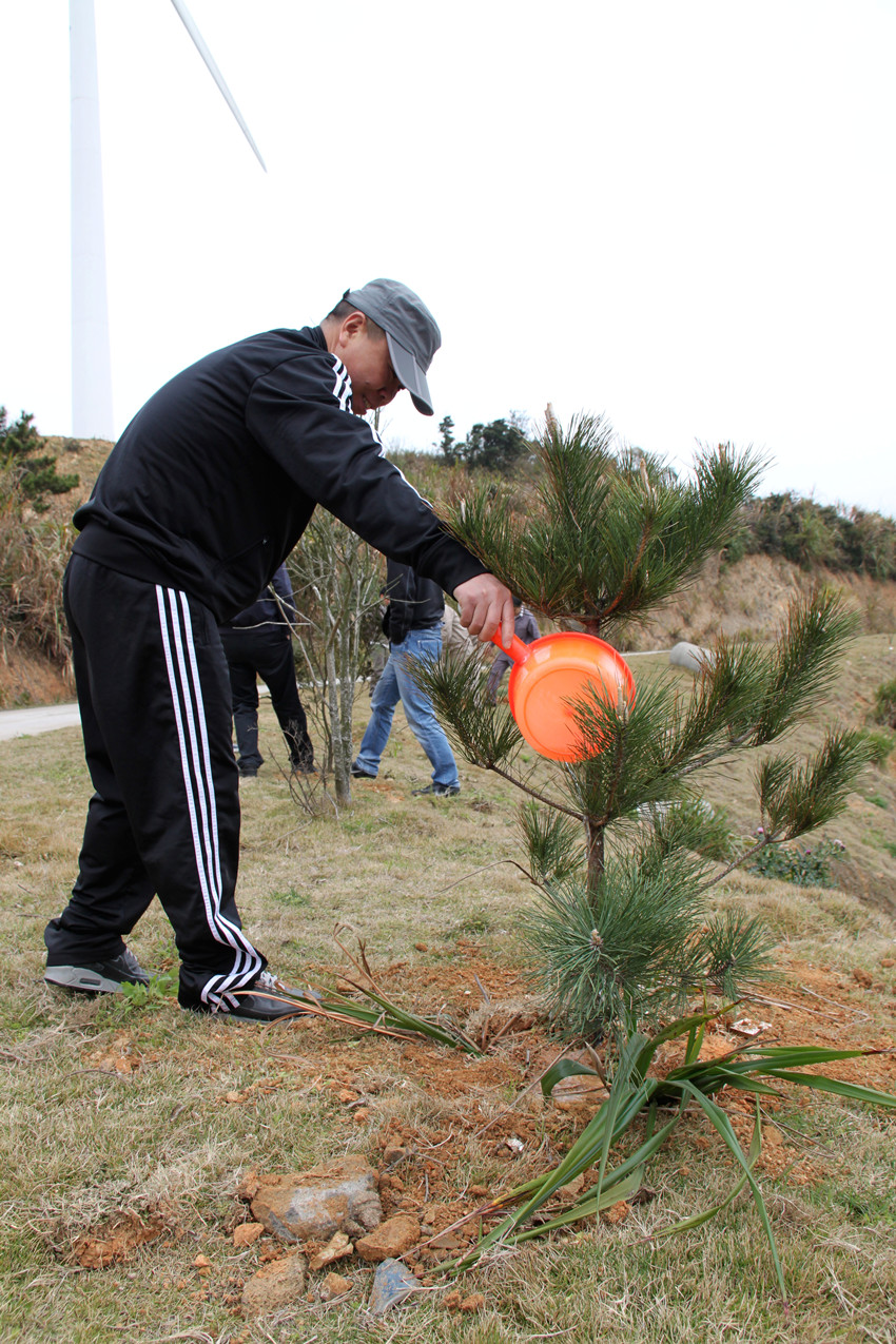 3月12日是我国一年一度的传统植树节,为了让我们公司员工生产生活有一个良好的环境、增加每一个人的绿化意识、提高每一个人的义务劳动积极性,在植树节当日,公司领导李戈董事长带领员工到北关岛霞关风电场植树。种新苗、浇灌水,所有成员积极参与,劳动情绪高涨,不仅为春光明媚的三月增添了一抹盎然绿意,更是种下了大家充满绿意的希望之春,令景色宜人的北关岛更显山清水秀,层峦叠翠。