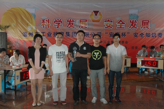 本次比赛由温州矾矿,温州快鹿集团,温州木材集团,温州市宏业投资发展有限公司等八支代表队参加了比赛,共有24名选手参赛。知识竞赛有必答题、抢答题、风险题和观众答题环节组成,内容涵盖《国务院关于进一步加强企业安全生产工作的通知》,《国务院关于坚持科学发展安全发展促进安全生产形势持续稳定好转的意见》,《国务院办公厅关于印发安全生产“十二五”规划的通知》等三部法规和安全基本知识、集团公司相关安全会议精神和文件等。经过三轮紧张激烈的角逐,我们公司代表队获得了本次比赛的第一名,温州矾矿代表队获得第二名,温州面粉公司代表队获得第三名。