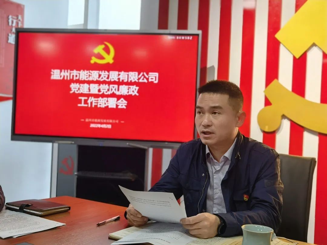 4月2日上午,best365官方网站召开2022年度党建暨党风廉政建设工作专题部署会。公司党支部书记、董事长、总经理丁明利主持会议,公司全体干部职工参加会议,平阳西湾风电场、苍南霞关风电场运行人员以“云会议”形式参加。