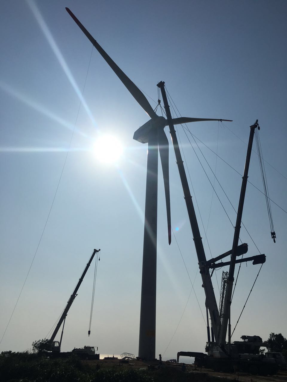 2016年9月20日,苍南霞关风电二期1.5MW风机组装首台吊装成功。现场工作人员在确保安全的情况下,努力克服现场地处孤岛,地形复杂,气候多变等不利因素,圆满地完成首台风机吊装任务,为后续工程和实现投产打下了坚实的基础。
