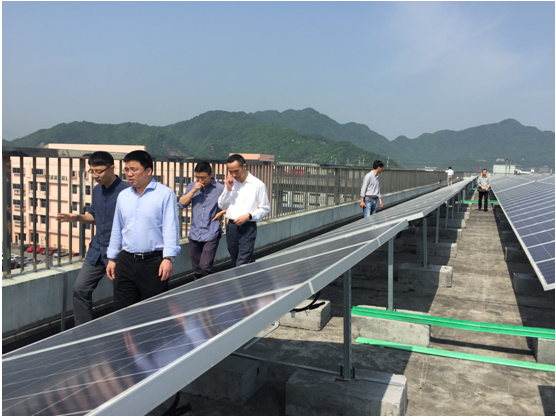 2015年4月29日上午,温州市工业投资集团总经理张志东同志、集团党委委员王锋同志一行到我公司温州双屿物流中心光伏发电项目视察,我公司董事长李戈同志陪同视察,并向他们介绍了整个项目的进展情况,项目主体工程已基本完成,待项目电缆敷设调试完成即可验收并网发电。听完介绍集团总经理张志东提出希望我们做好最后关键工作,并期望早日并网发电。